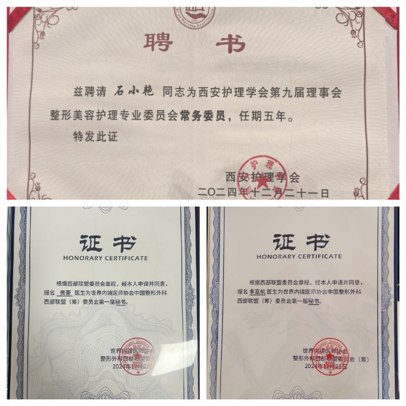 延安大學咸陽醫(yī)院醫(yī)療美容科團隊受聘證書