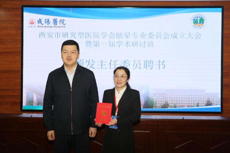 大會由西安市研究型醫院學會楊濤副秘書長主持。來自全省300余名各級醫療機構學科負責人和骨干參加。會議期間,張桂芳主任詳細介紹了專委會籌備工作,學會副秘書長許浩軒宣讀《批復文件》,楊濤宣讀分支機構選舉辦法。經過嚴格選舉程序,延安大學咸陽醫院神經內科主任張桂芳當選為專委會主任委員,西安市第九醫院神經內科主任王麗娜、西北大學第一醫院腦科病院副院長韓豐立、西安市北方醫院副院長劉鋒昌等14人當選副主任委員,延安大學咸陽醫院神經內科責任總醫師夏輝擔任秘書長。大會還選舉產生常委64人,委員187人。西安市研究型醫學會副會長王漠萱為眩暈專業委員會授牌,并為主任委員張桂芳頒發聘書。
