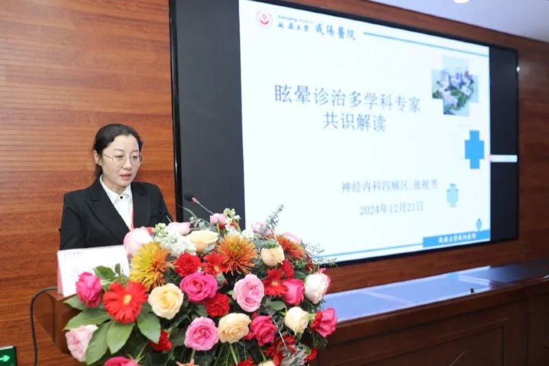 西安市第九醫院神經內科主任王麗娜教授主持學術交流。西安市第三醫院神經內科主任馬娟教授講授《前庭性偏頭痛》、延安大學咸陽醫院神經內科主任張桂芳教授講授《眩暈多學科診治專家共識解讀》、延安大學咸陽醫院心血管內科李陽教授講授《PFO與眩暈》。