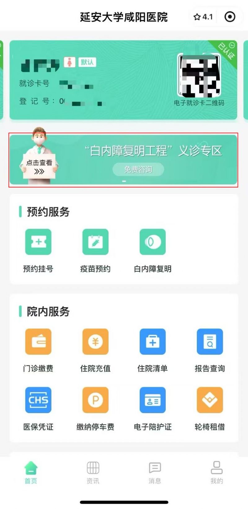 微信識(shí)別下方二維碼,即可識(shí)別進(jìn)入“延安大學(xué)咸陽(yáng)醫(yī)院互聯(lián)網(wǎng)醫(yī)院”小程序,注冊(cè)后進(jìn)入義診專區(qū)。