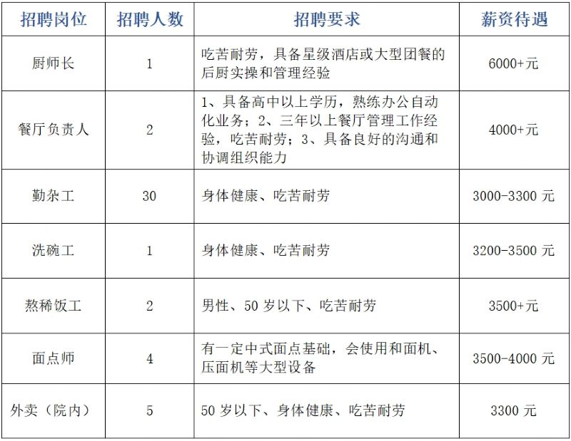 根據工作需要,現面向社會發布后勤工作崗位,具體信息如下: