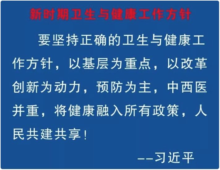 《健康中國2030規劃綱要》明確新時期衛生與健康工作方針,俗稱38字衛生方針,“以基層為重點,以改革創新為動力,預防為主,中西醫并重,將健康融入所有政策,人民共建共享?!?