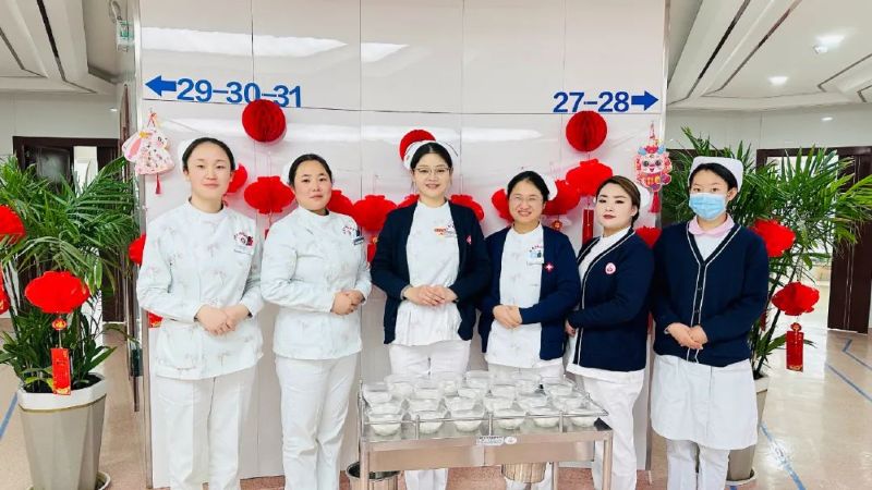 活動當(dāng)天,病區(qū)走廊被精心布置,喜氣洋洋的燈籠高高掛起,一個個手工制作的燈謎卡片懸掛在燈籠下,輕輕搖曳著。處處洋溢著濃厚的節(jié)日氛圍。醫(yī)護(hù)人員們早早地來到病房,將飽含著祝福的元宵送到每一位患者手中。