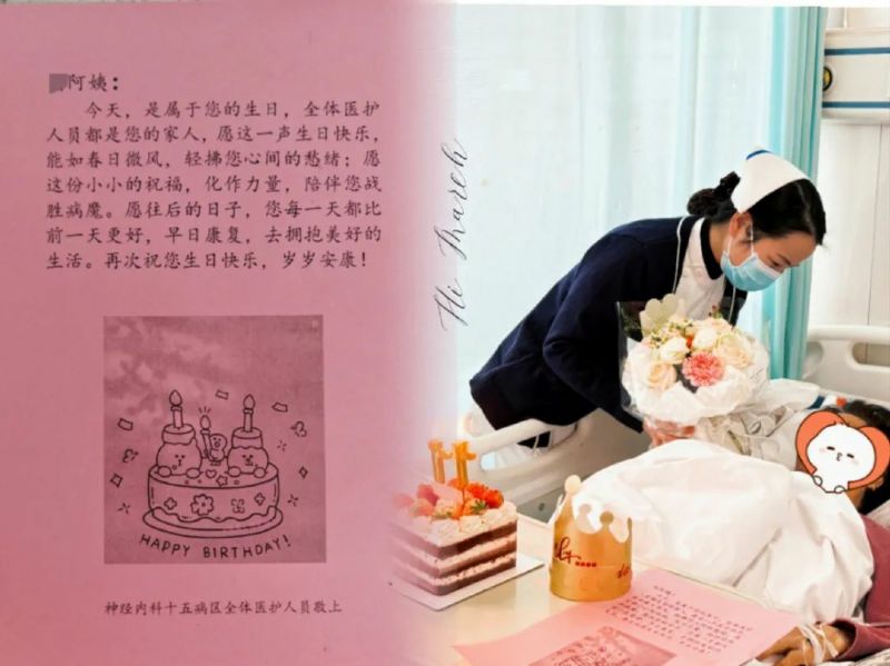 護士深知患者此刻對家的渴望與對生日的期盼,立刻將情況上報給護士長。護士長聽聞,沒有絲毫猶豫,自掏腰包訂下精致的生日蛋糕,還精心挑選了一束鮮花,寓意著生機與希望,醫生護士們寫下祝福賀卡,希望能為劉阿姨黯淡的病房時光增添一抹亮色。