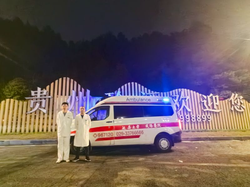 迅速響應,彰顯急救擔當。急診醫學科接到指令后即刻行動,組建專業醫護團隊攜帶先進搶救設備,于22日12時出發,歷經11小時、近1000公里疾馳,穿越黔陜崇山峻嶺,深夜抵達遵義。抵達后,醫護人員不顧疲勞,直奔病房,詳細了解患者病情,評估生命體征,制定周密的轉運方案,并對可能出現的突發情況做好充分準備。隨后,滿載生命希望的救護車踏上歸途。