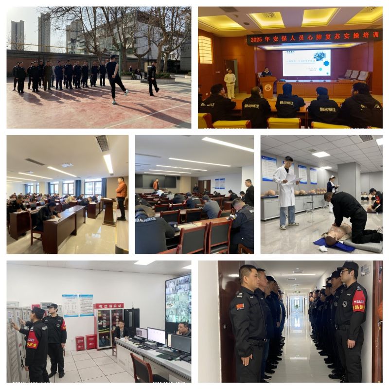 培訓階段內容豐富實用,涵蓋了員工行為規范、消防安全理論、消防應急演練、治安防范案例、心肺復蘇急救、體能技能訓練和突發事件處理等多個關鍵領域,培訓過程中全體安保人員認真學習,積極參與,展現了良好的安保形象和團隊協作精神。