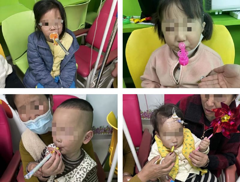 除了這些游戲,護(hù)士們還將專業(yè)的呼吸訓(xùn)練動(dòng)作教與家長(zhǎng)及孩子們,讓孩子們跟著一邊玩著,一邊做練習(xí),在輕松愉悅的氛圍中完成了呼吸訓(xùn)練。