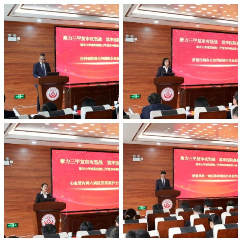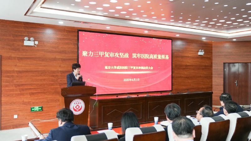 2025年4月1日15時(shí),延安大學(xué)咸陽醫(yī)院在外科病院二樓會(huì)議室隆重召開了三甲復(fù)審沖刺動(dòng)員大會(huì)。此次會(huì)議意義非凡,精誠醫(yī)療集團(tuán)領(lǐng)導(dǎo)、醫(yī)院領(lǐng)導(dǎo)班子全體成員、全體中層干部齊聚一堂,同時(shí),其余職工通過線上平臺(tái)積極參與,共同為決戰(zhàn)決勝三甲復(fù)審吹響了沖鋒號(hào)角。