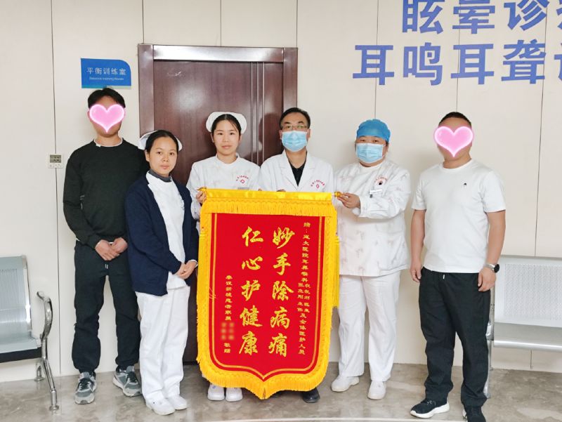 近日,在延安大學咸陽醫院耳鼻咽喉科門診,患者賈先生(化名)的兩名家屬,將一面“妙手除病痛,仁心護健康”的錦旗送到科室醫護團隊手中,患者多年眩暈癥狀徹底根治,感激之情溢于言表。