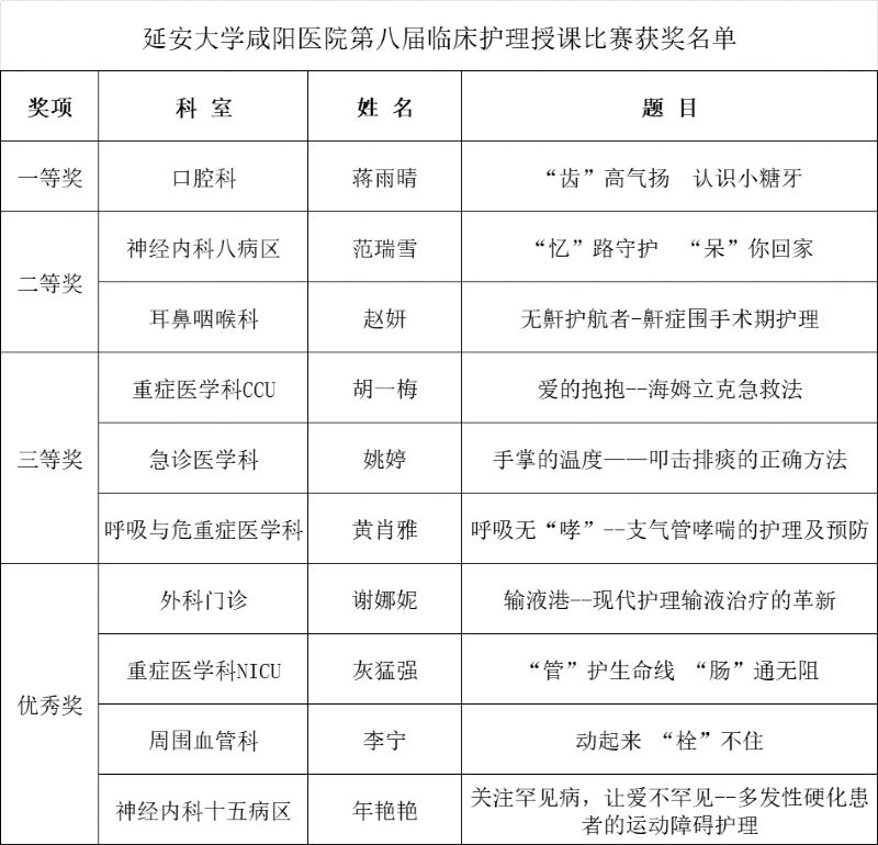 前期經過各科室嚴格遴選與分院復賽的激烈角逐,從百余位參賽者中脫穎而出10名教學能手晉級決賽,護理教育委員會委員、各科室教育護士及護理實習學生等100余人參與本次活動。延安大學咸陽醫院副院長韓曉芳、院長助理兼護理部主任楊敏、神經內科三病區副主任王颯、婦科副主任醫師牛芳蕾等受邀出席。