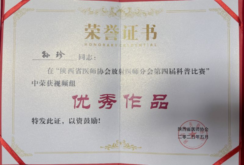 孫珍在科普比賽中獲得優(yōu)秀作品此次大賽成績的取得,既展現(xiàn)了我院醫(yī)學(xué)影像科CT/MRI室團(tuán)隊在省內(nèi)影像界的競爭力,又展現(xiàn)了科室在醫(yī)教研全面發(fā)展方面取得的顯著成效,同時也擴(kuò)大了我院在省內(nèi)的知名度。