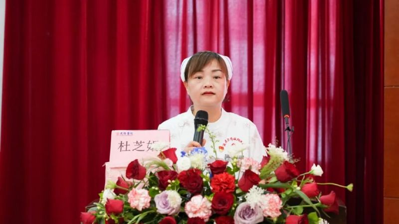 我院優秀護士代表王津發言:她用“溫度、敬畏、未來”為關鍵詞分享自己在工作中用敘事護理為路徑傳遞人文關懷,治愈心靈;在生死較量中堅守職業敬畏,守護生命尊嚴;于科技浪潮里精進專業、呼吁全院護士做有根的“提燈人”。優秀護士長代表杜芝娟倡議全院護士始終堅守初心,深化"以患者為中心"理念,用專業與溫度守護生命;潛心精進技能,提升精準照護能力;攜手協同創新,以"全院一盤棋"的擔當推動醫院高質量發展;賡續傳承奮進,在"三甲復審"中展現團結實干精神。