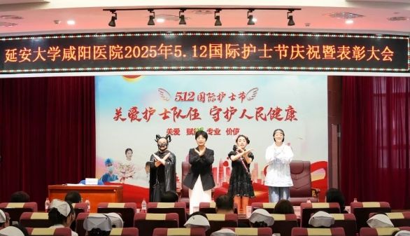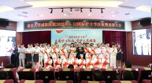 在第114個國際護士節到來之際,延安大學咸陽醫院于2025年5月8日下午在腦血管病院第三學術廳隆重舉辦主題為“關愛護士隊伍,守護人民健康”的護士節活動。精誠醫療集團董事局主席兼延安大學咸陽醫院董事長李衛軍、延安大學咸陽醫院院長姚曉峰、常務副院長吳棟梁及院領導班子成員、各職能部門負責人、全院護士長及受表彰的優秀護士、優質護理服務先進集體與個人、臨床護理優秀教學集體及優秀帶教老師,全院護士代表370余人參會,共同致敬新時代南丁格爾精神的踐行者。