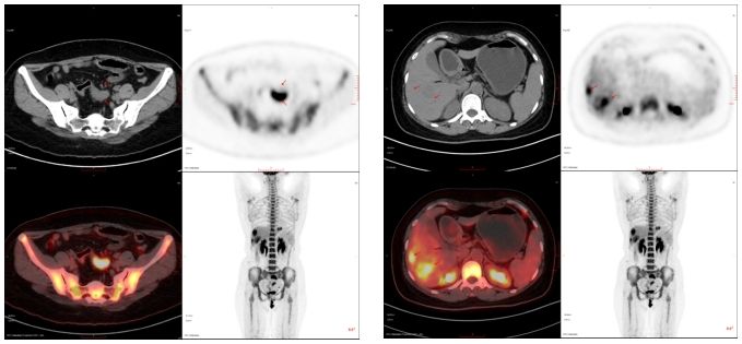 40歲,女,外院查腫瘤標志物示:癌胚抗原(CEA)411.00 ng/ml,糖類抗原19-9(CA19-9)30.0 U/ml;來我科行PET/CT檢查。