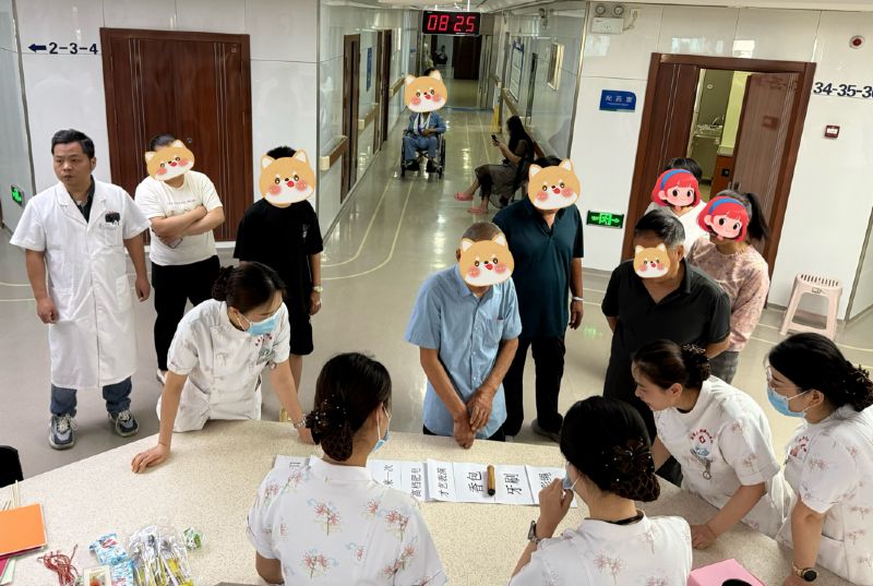 這里沒有病痛的陰霾,只有其樂融融的氛圍!無論是系彩繩時的虔誠,猜字謎時的思索,還是玩游戲時的歡笑,都在訴說著同一個信念——即便身處病房,也要讓患者感受到家一般的溫暖,過一個難忘又溫馨的端午!