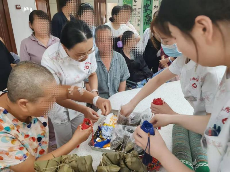 活動(dòng)最后,科室護(hù)士長(zhǎng)及主任到患者床頭為每一位患者發(fā)粽子及彩繩。伴隨著節(jié)日的歡聲笑語,本次端午活動(dòng)進(jìn)入尾聲。