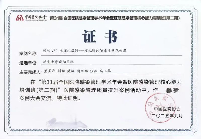 在2025年9月4日至8日于福建福州召開的第31屆全國醫(yī)院感染管理學(xué)術(shù)年會上,我院感控團隊?wèi){借《預(yù)防VAP點滴匯成河—模擬肺的消毒及規(guī)范使用》案例,從全國400余個參賽項目中脫穎而出,在大會匯報交流,被評為“攀登案例”。