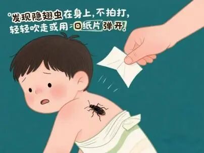 吹(驅趕): 如果蟲子只是在爬,千萬不要用手拍打! 輕輕吹走它,或用紙巾、小刷子等物品將其撥開。