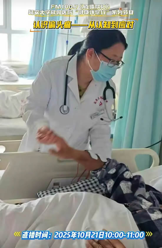 10月21日,神經(jīng)內(nèi)科五病區(qū)王玉副主任醫(yī)師受邀參加了咸陽廣播電視臺(tái)FM100.7《直播咸陽》“健康伴您行”欄目,詳細(xì)講解了偏頭痛相關(guān)知識(shí),著重強(qiáng)調(diào)了科學(xué)認(rèn)識(shí)、科學(xué)應(yīng)對(duì)偏頭痛,內(nèi)容通俗易懂。同天下午神內(nèi)五病區(qū)開展了頭痛公休座談會(huì),由陜西省老年專科主管護(hù)師任苗開展頭痛科普宣講,咸陽市神經(jīng)內(nèi)科專科護(hù)師王娟娟帶領(lǐng)學(xué)習(xí)頭痛保健操,現(xiàn)場(chǎng)護(hù)患互動(dòng),受到患者及家屬一致好評(píng)。
