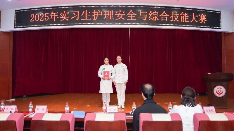 大賽尾聲,邢娟娟主任委員作總結發言。她指出,本次大賽以“安全為基石,技能為利器”,通過貼近臨床的環節設置,全面考核了實習生的綜合能力。她贊揚同學們沉著冷靜、操作規范,將安全理念內化于心、外化于行,并強調本次競賽不僅是對實習階段的檢驗,更是一堂生動的成長課。她希望全體實習生以此為起點,在未來道路上持續精進,用專業與溫度守護生命,不負白衣使命。