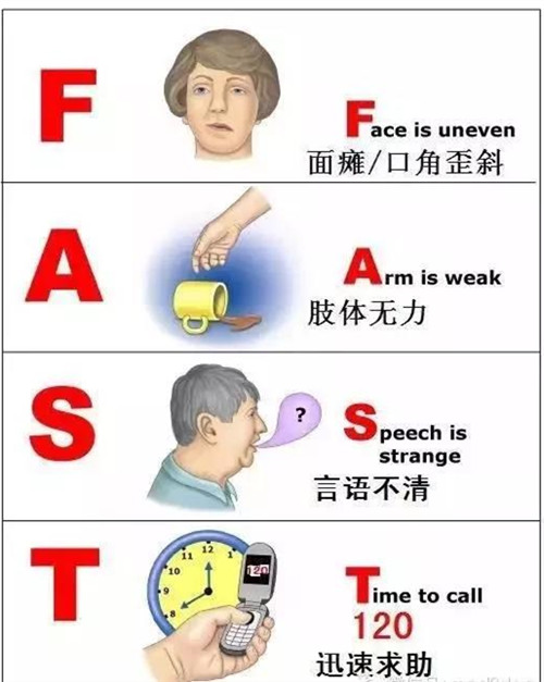 盡快識別中風或TIA,牢記“FAST”口訣: