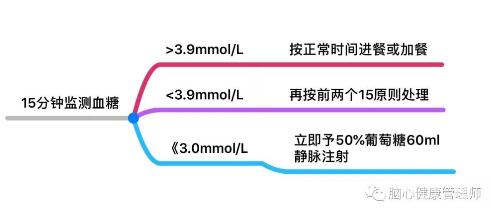 一旦出現低血糖癥狀,有條件的患者應立即測定血糖水平。低血糖的患者應牢記兩個“15”原則。