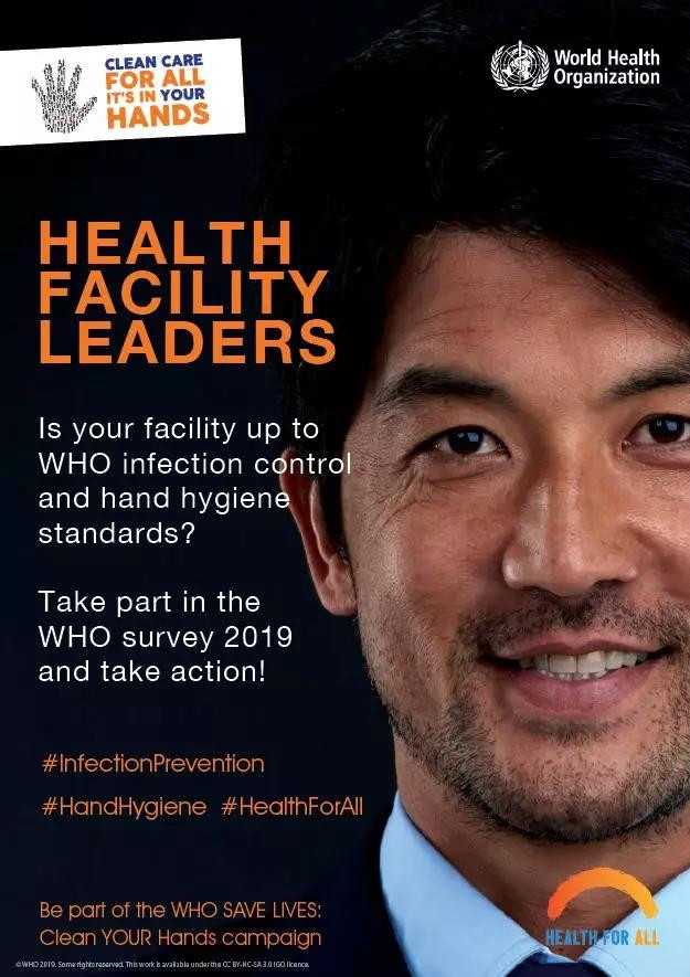 醫(yī)療機構(gòu):“你的機構(gòu)符合世衛(wèi)組織感染控制和手衛(wèi)生標(biāo)準(zhǔn)嗎?參與世衛(wèi)組織2019年調(diào)查,行動起來!”