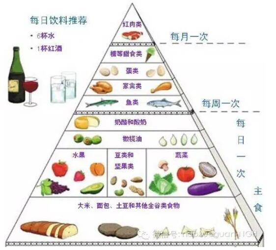 地中海飲食結(jié)構(gòu)--簡單、清淡、富含營養(yǎng)。地中海飲食簡單地講,就是:豐富的谷類、豆類、蔬菜、水果、橄欖油,輔以葡萄酒和魚類。