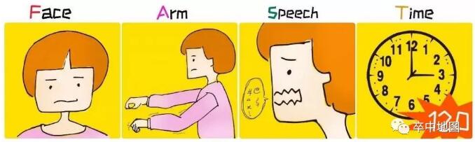 F(Face,臉):微笑!當臉部兩側(cè)不對稱或一側(cè)嘴角歪斜,就是異常;